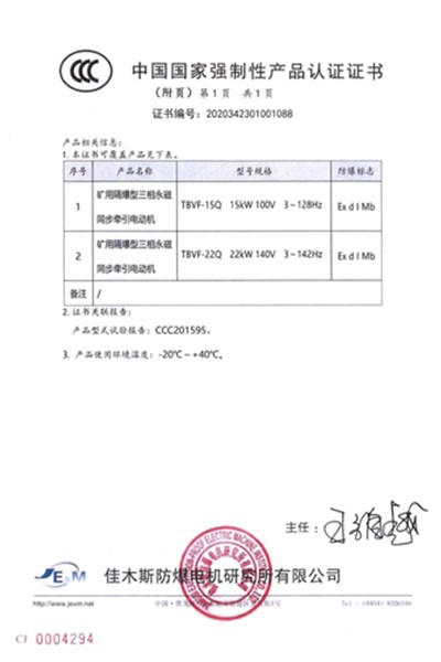 电机3C产品认证证书(TBVF-15Q TBVF-22Q)