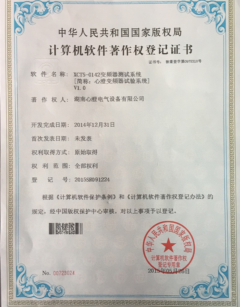 软件著作权(XCTS-0142变频器测试系统V1.0)